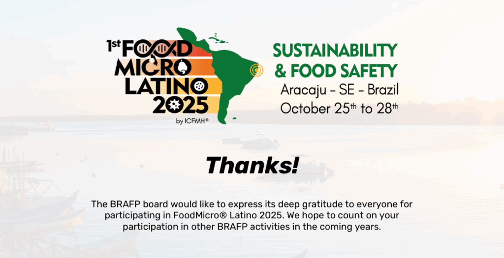 The Brazilian Association for Food Protection (BRAFP) is pleased and honored to host the 1st FoodMicro® Latino 2025, which will take place in October 2025 in Aracaju, Sergipe, Brazil. As the local organizers, BRAFP aims to offer an exceptional experience at one of the most prestigious global events in food microbiology, FoodMicro®, organized by the ICFMH every two years in Europe.